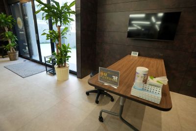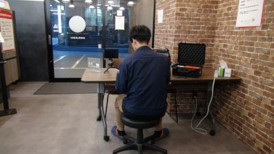 入口すぐ横に機材のチェックができるスペースをご用意しております。